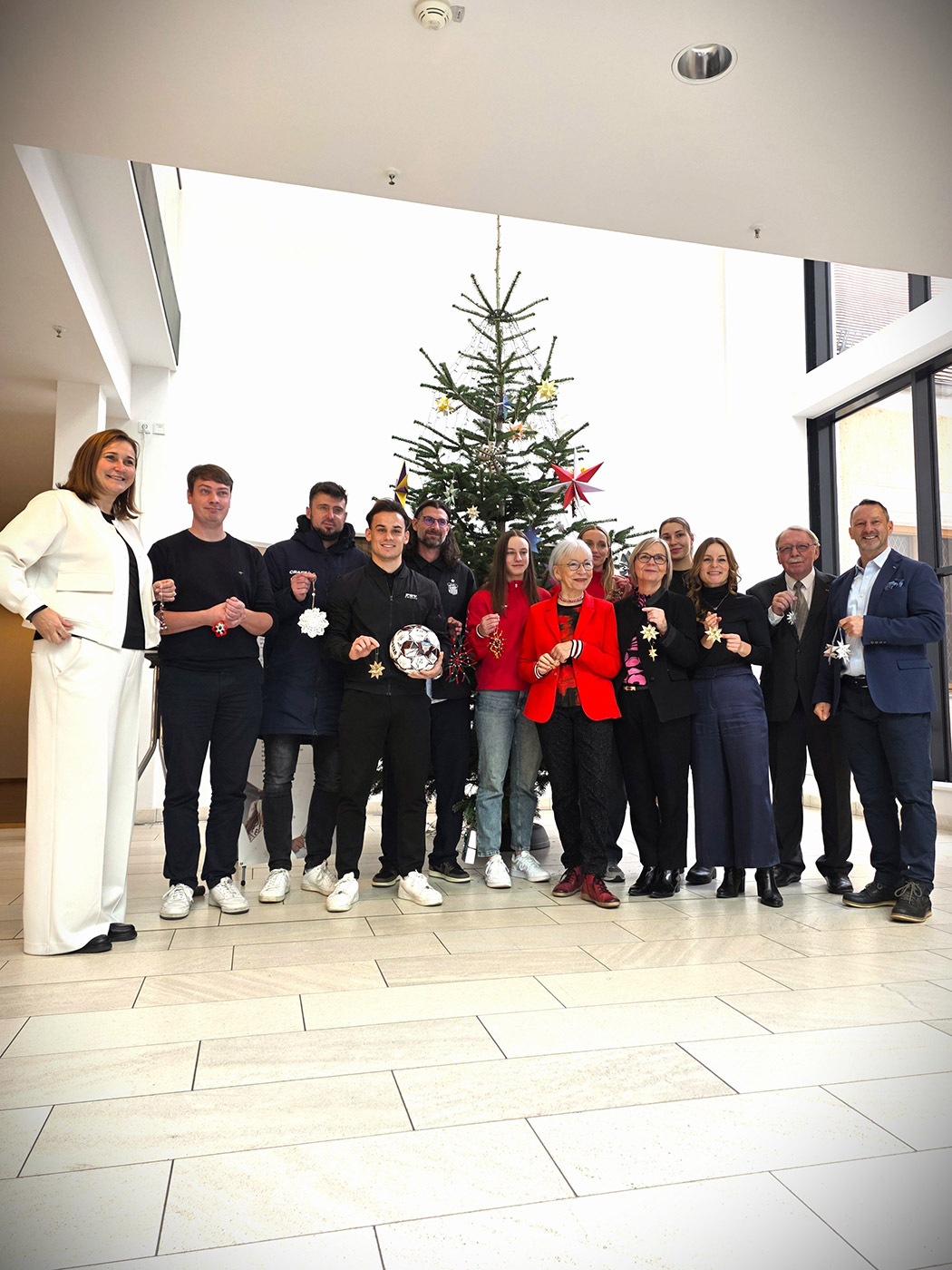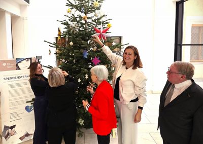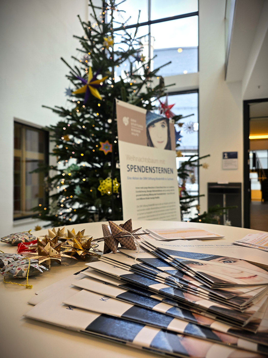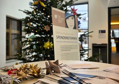 Der Baum trägt viele handgefertigte Sterne, individuell gestaltet von Kindern aus unserer Region. Jeder Stern steht für eine Spende. Und jede Spende unterstützt Projekte, die benachteiligten Kindern und Jugendlichen Orientierung, Förderung und neue Möglichkeiten geben.